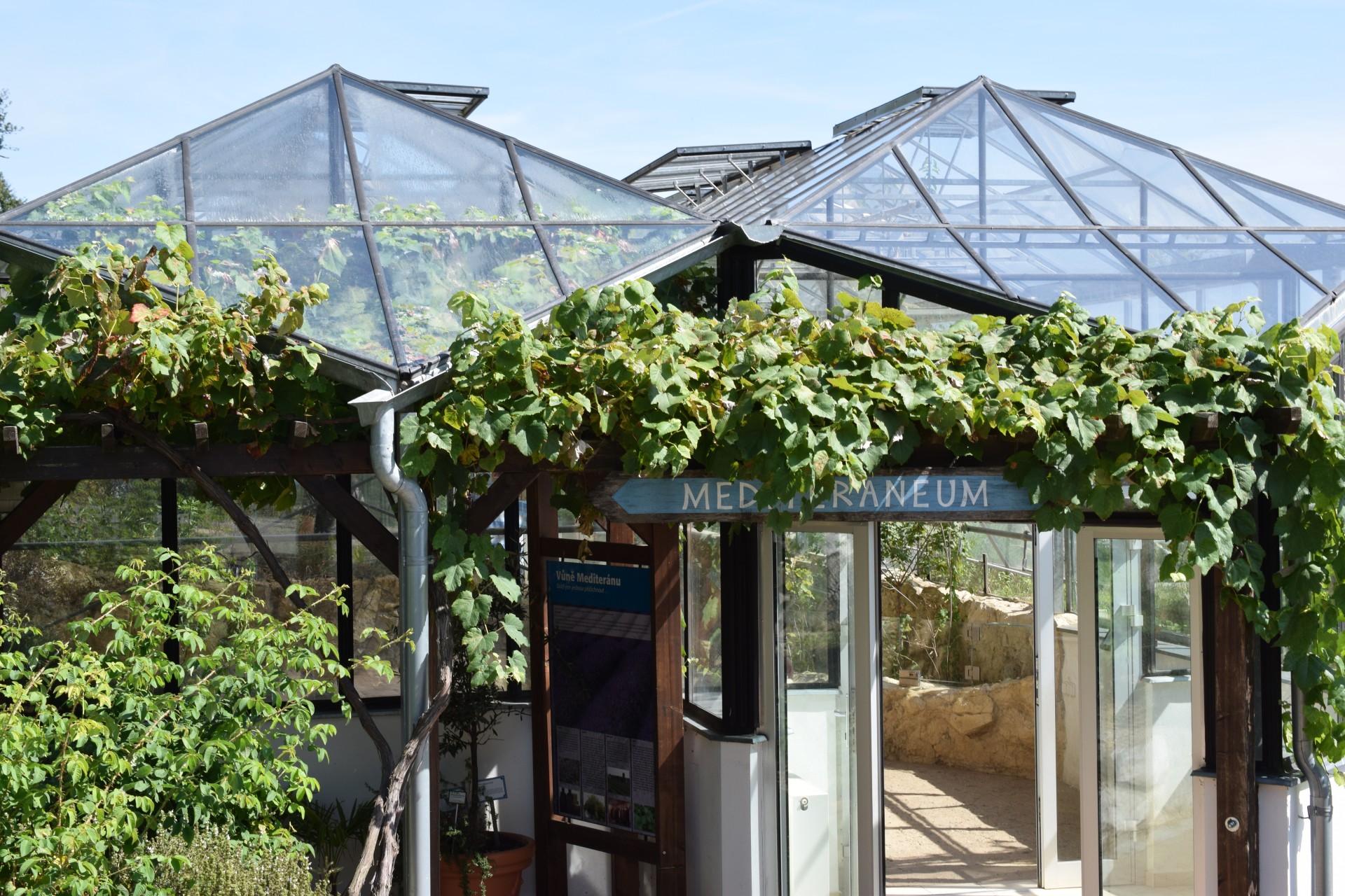 Když si pozorně projdete jmenovky u rostlin a dřevin v kontejnerech, určitě řadu z českých jmen poznáte a vzpomenete si na jejich plody z nabídek obchodů s kořením či s exotickým ovocem. Už teď se ve slunečných dnech celý prohřátý skleník provoní rozmarýnem, vavřínem, tymiánem a dalšími bylinkami. A pokud nakonec na chvilku zavřete oči, můžete se zaposlouchat do zvuku cikád a rázem zapomenete, že nejste u moře, ale na kraji velkoměsta.