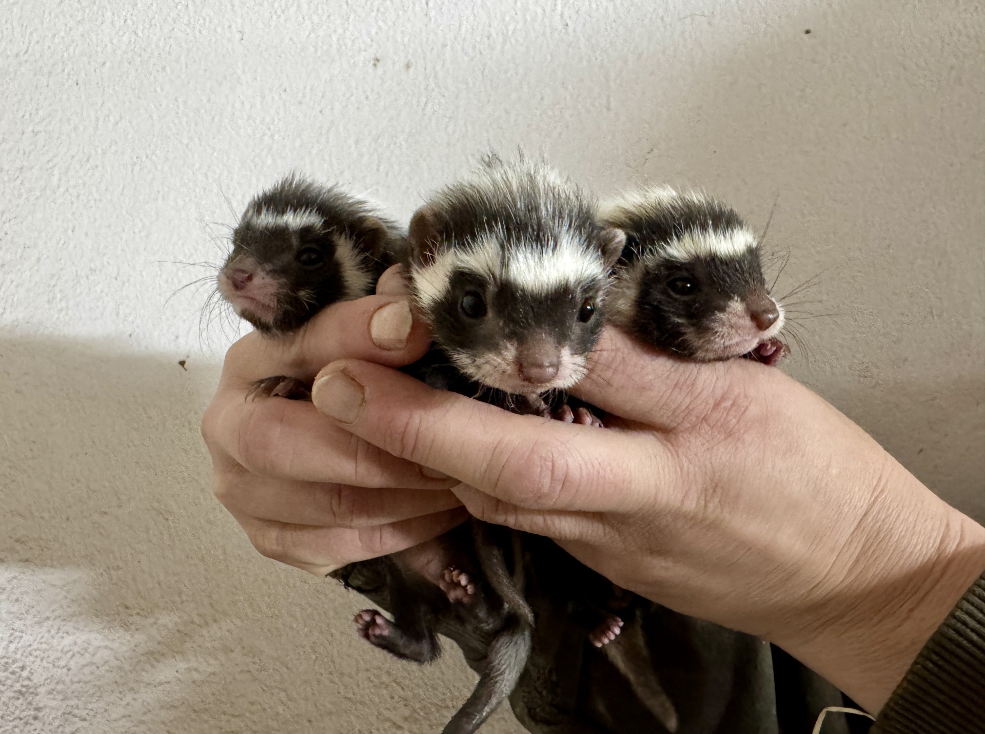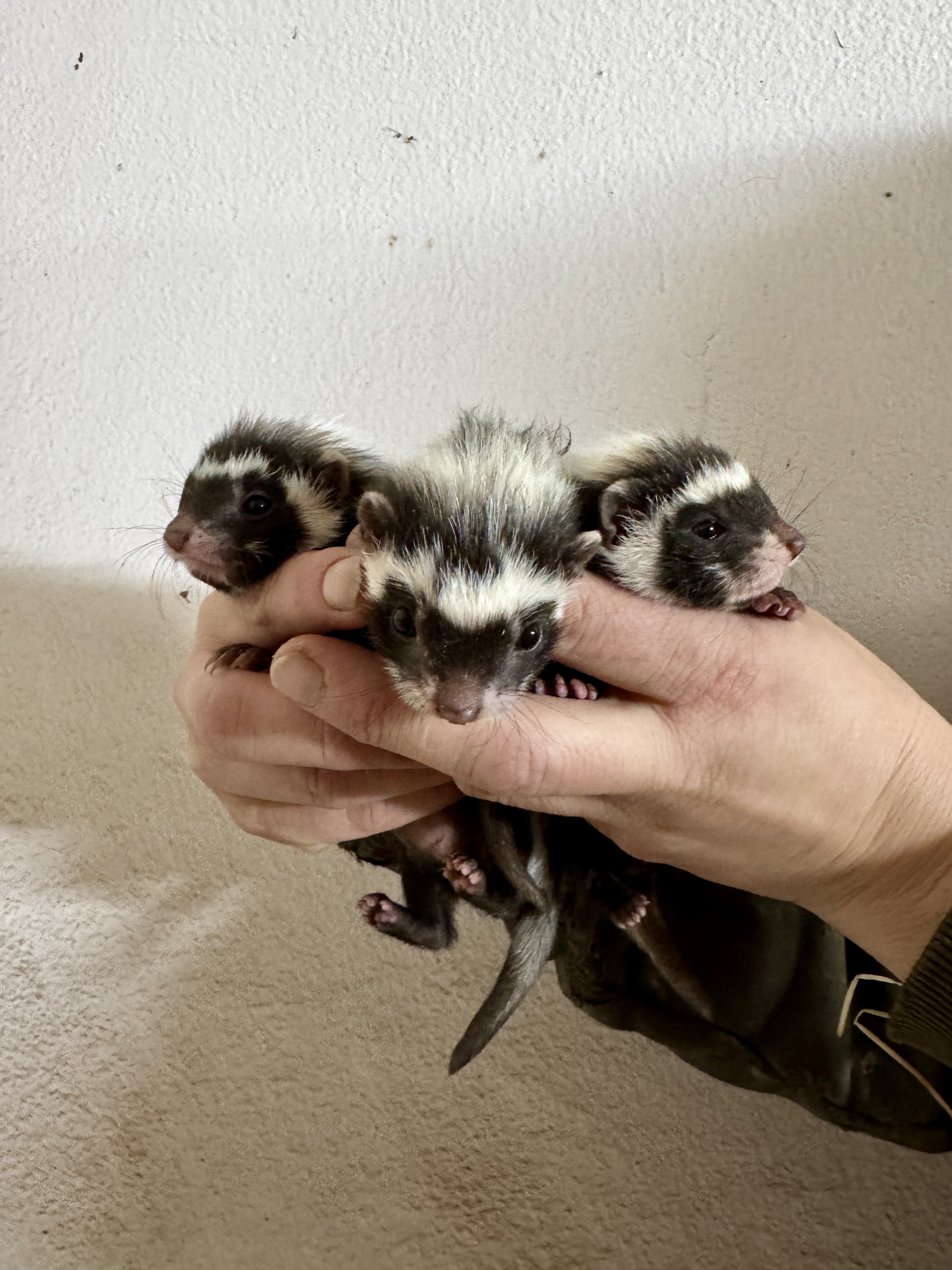 Téměř přesně na den přesně jsme zvládli vypočítat možný termín porodu. Očekávali jsme vánoční dárek nicméně čtyři mláďata chovatelka objevila 23. prosince. Při odchovu takto početných vrhů běžně dochází ke ztrátám, což se stalo i u nás, kdy jedno mládě uhynulo. Během první kontroly, ve 4 týdnech, jsme zjistili, že se jedná o jednoho samce a dvě samice. V osmi týdnech byly mláďatům aplikovány mikročipy.
